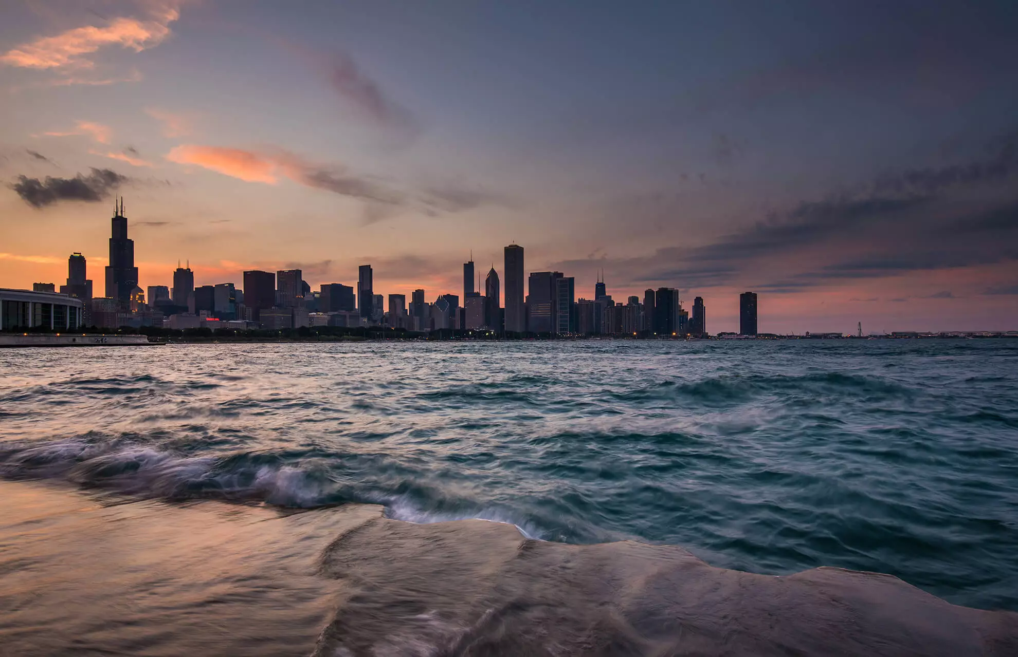 MAKING WAVES: Chicago from the shores of Lake Michigan. Turn some lights on, folks!