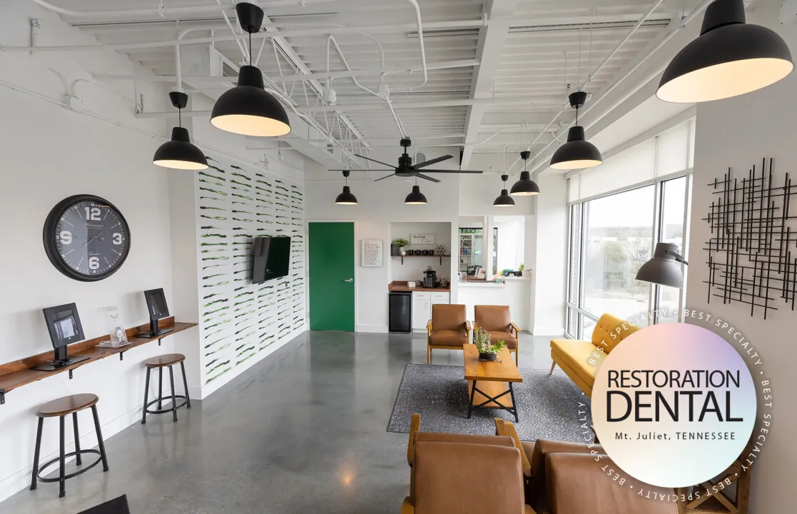 A NASHVILLE-AREA native who knew the city and its surroundings well before it was quite the bustling behemoth it has since become, Dr. Nick Norvell was sensibly animated by visions of calm, compassionate care when he and his wife, Kami, designed and opened Restoration Dentistry as the first (and still only) prosthodontics practice in Mt. Juliet, Tennessee, just east of Music City. The build came in at $363,000, just a smidge over its initial budget.