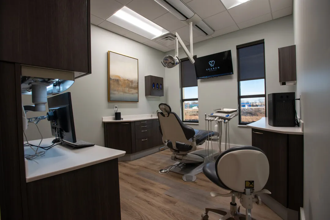 Construction began in August 2021 but was put on hold briefly thanks to significant unexpected hurdles: those supply-chain hassles, plus the need to excavate a large amount of rock at the site. “We had to make strategic decisions throughout to make sure regular construction supplies would make it to the site when needed,” Dr. Search, 38, says. “In the end, we were able to bring a top-of-the-line dental facility to a rapidly growing community that desperately needed more patient care.” The build was finished in June 2022.
