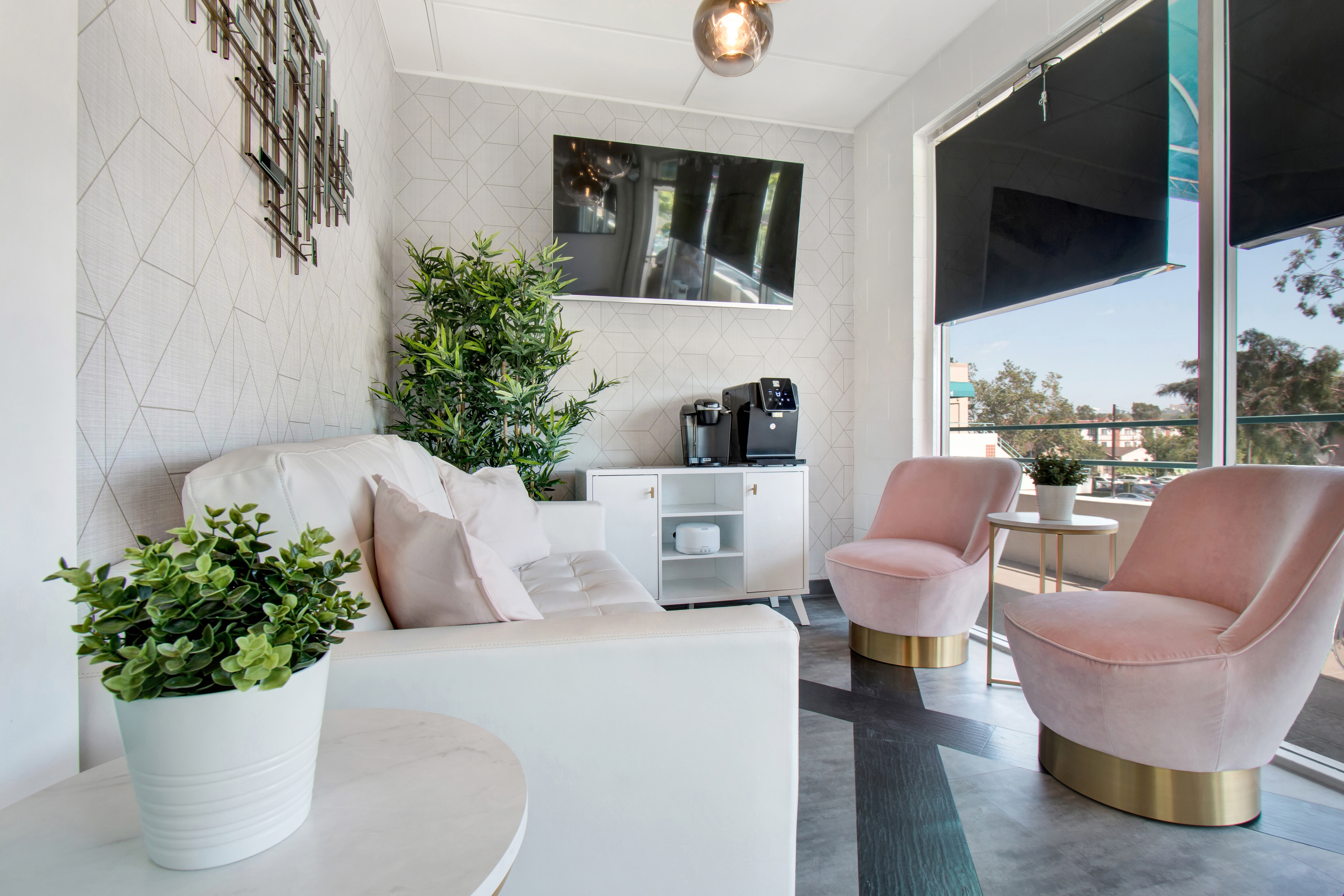 At the South San Francisco location of Quijano Dentistry, metallic finishes on the furniture, wall decor, lighting (all shown) and reception desk all support the practice’s Glam Art Deco style. Dr. Generoso Quijano Jr. and Dr. Anna Valera-Quijano collaborated with Benco Dental Design to create this beautiful office design.