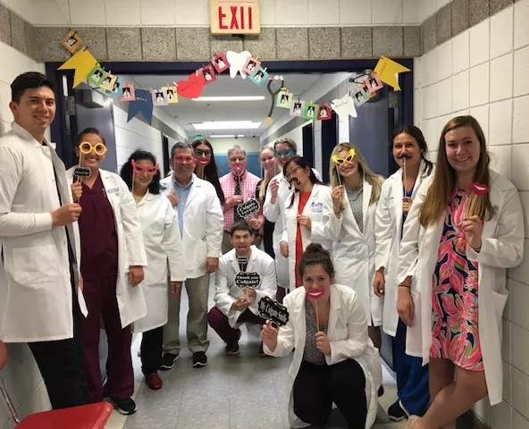 “The kids are given masks, gowns and gloves, so they have a great time as a doctor for the day. They sometimes can’t stop stitching the bananas and will name their bananas afterward, which is really funny.” -Students of Dr. Melissa Ing learn how to suture a wound using a banana as their patients.