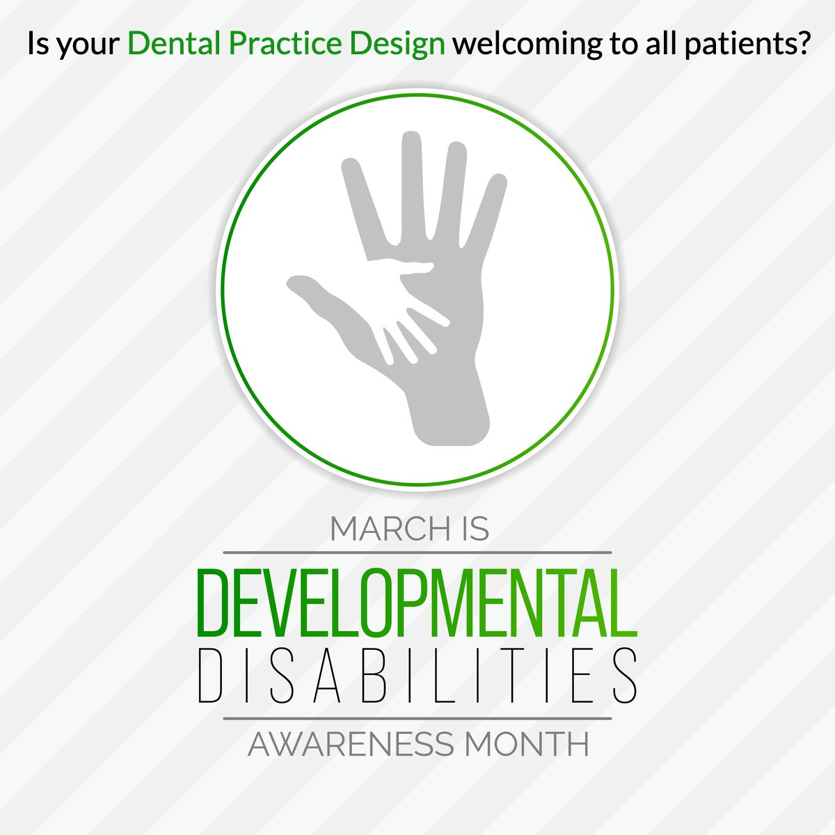 Each March, during Developmental Disabilities Awareness Month, the National Association of Councils on Developmental Disabilities (NACDD) raises awareness about the inclusion of people with developmental disabilities in all facets of community life. According to CDC.gov, recent estimates in the U.S. show that about one in six children aged 3 through 17 years have one or more developmental disabilities. These occur among all racial, ethnic, and socioeconomic groups, and can include ADHD, autism spectrum disorder, cerebral palsy, hearing loss, intellectual disability, learning disability, vision impairment and other developmental delays. As a starting point, every practice must comply with requirements put in place through the Americans with Disabilities Act. A licensed architect or registered interior designer will be familiar with these codes, for instance: