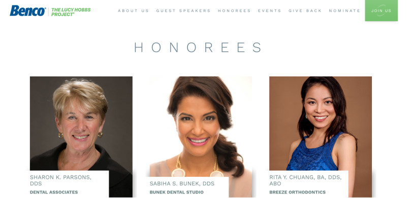 At Benco’s annual Lucy Hobbs Project Celebration (Register today for October 3 – 5, 2019 in Chicago: Click here!), the dental community is invited to honor award recipients in six categories: