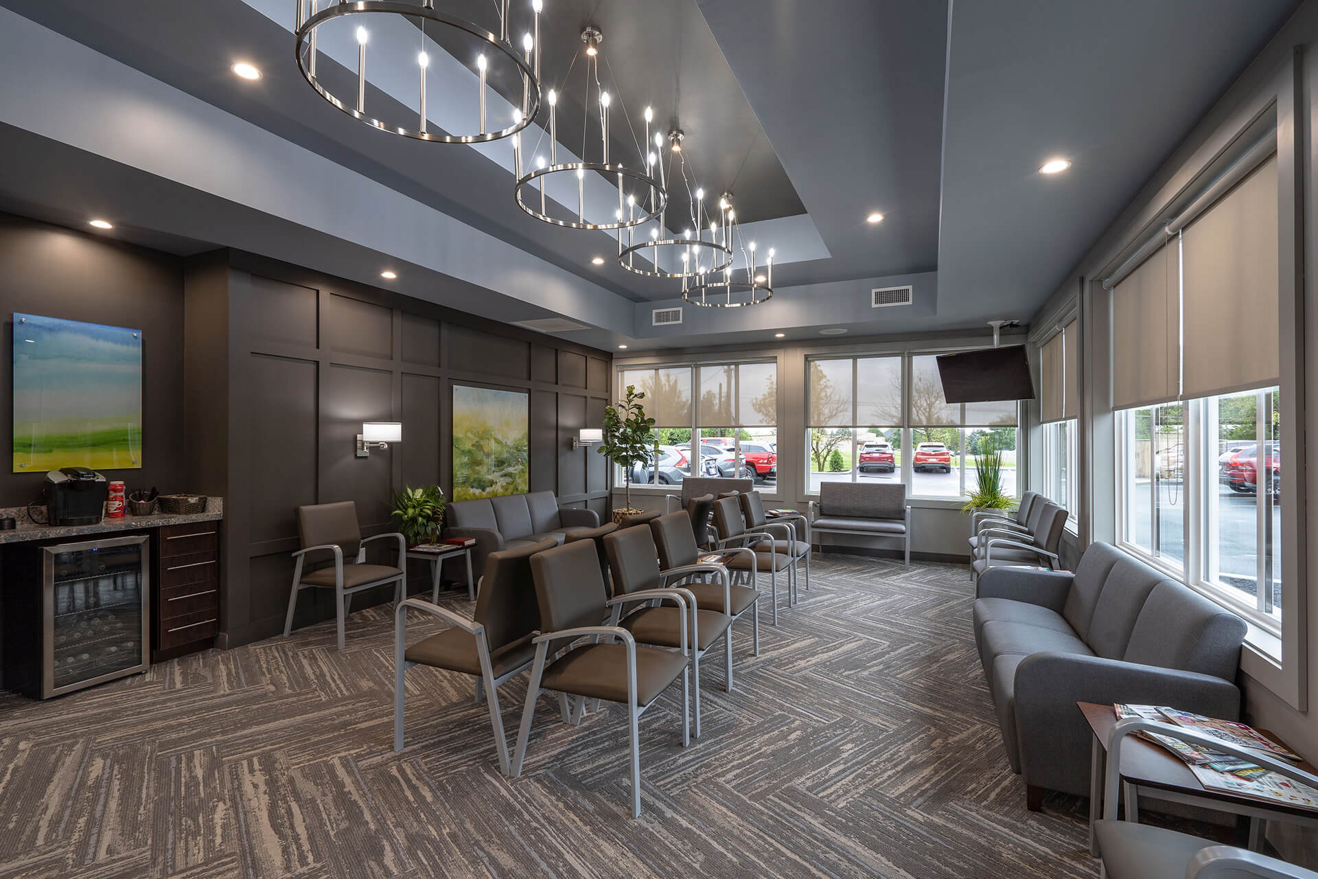 “Our inspiration was from our previous practice and our patients—I was at the previous location for 26 years, and Kyle was there about 10,” Dr. Simone says. “It was small. We wanted accessibility and more openness—lots of windows, lots of light.” The two doctors found it all in the 5,200-square-foot practice they built from the foundation up.