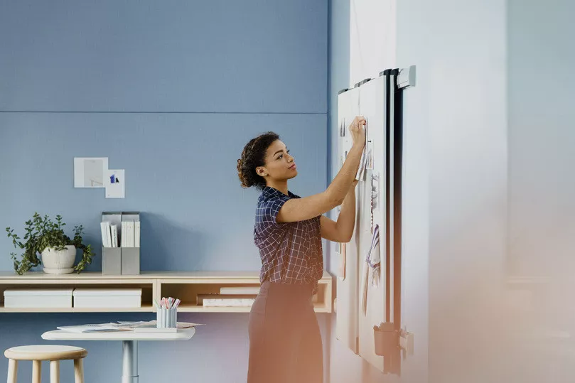 To achieve this, Benco’s CenterPoint Design team helps align your surroundings, furnishings and tools so work flows seamlessly in every area of your practice and into all office layouts. With Exclave, creative thinking that begins in one space can be refined or expanded in another. Shown above, Exclave Whiteboard system, designed for Herman Miller by Gianfranco Zaccai can be moved from room to room.