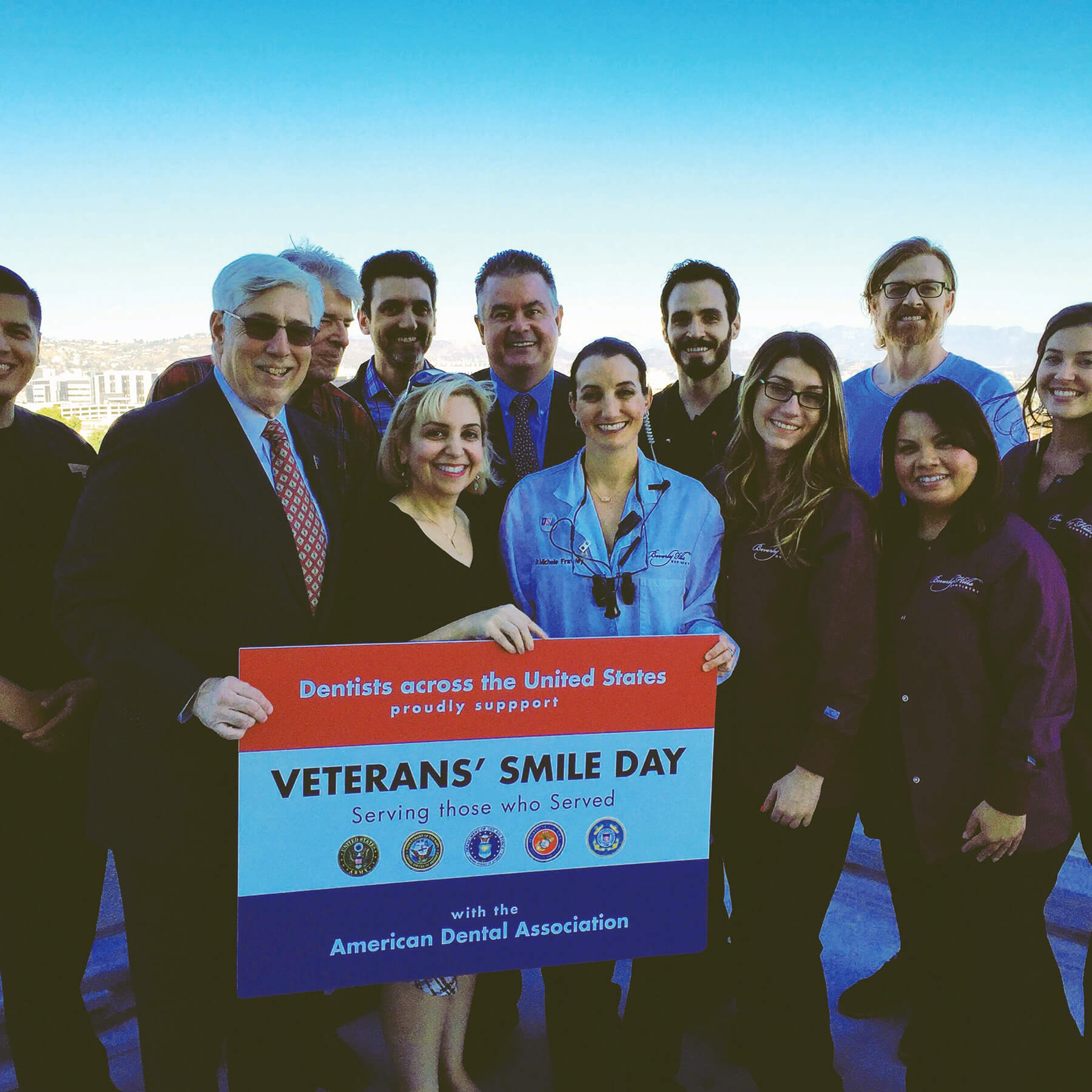 Her particular focus: veterans, of which her late father was one. “I’ve always had special respect for veterans’ sacrifices,” she says — and two years ago she reconnected with a dental-school classmate, Dr. Deryck Pham, who practices in Mays Landing, New Jersey, just outside Atlantic City. “A [Navy] veteran himself, he informed me that just 2 percent of veterans qualify for dental benefits,” Dr. Irani says. “They’re being neglected and need help.” Veterans’ Smile Day — now sponsored by Procter & Gamble, Henry Schein and others — was born.