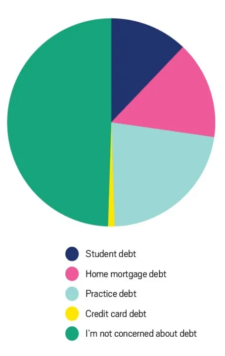 Financial freedom in retirement often hinges on eliminating big debts, which can drain even sizable nest eggs. By mid-career, many respondents have paid off major obligations—like practices or vacation homes—or expect to soon. Encouragingly, nearly half say they’re not at all concerned about debt, including younger dentists who likely still carry mortgages, practice loans and residual student debt.