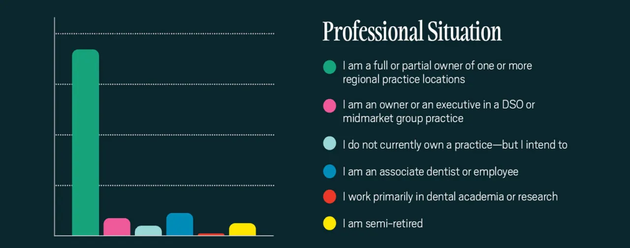 Since joining the firm in 1997, Wicker has focused exclusively on dentists’ unique needs, sharing insights at the firm’s Practice Transition Seminar, dental society meetings, study clubs and events hosted by Incisal Edge and our publisher, Benco Dental. His team helped design this survey in collaboration with Incisal Edge. With that foundation, let’s dive into what dentists are doing and how you can refine your own strategy.