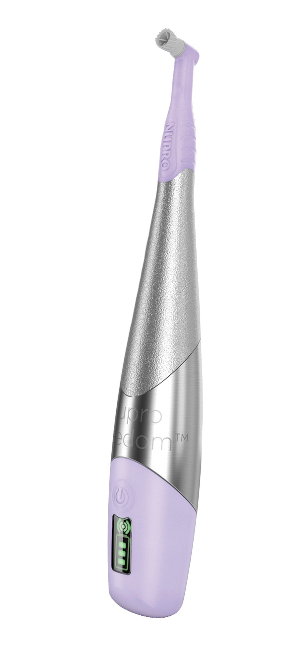 “The Nupro Freedom Cordless Prophy System is quieter than traditional air driven hygiene or low speed handpieces, providing patients with a more pleasant polishing experience,” said Gail Malone, Global Professional Services Senior Manager. “Additionally, when combined with Nupro Freedom® Slim Disposable Prophy Angles, they provide less chatter and vibration for the patient as well as better visibility and access for the clinician. It’s a win-win for the patient and the clinician.”