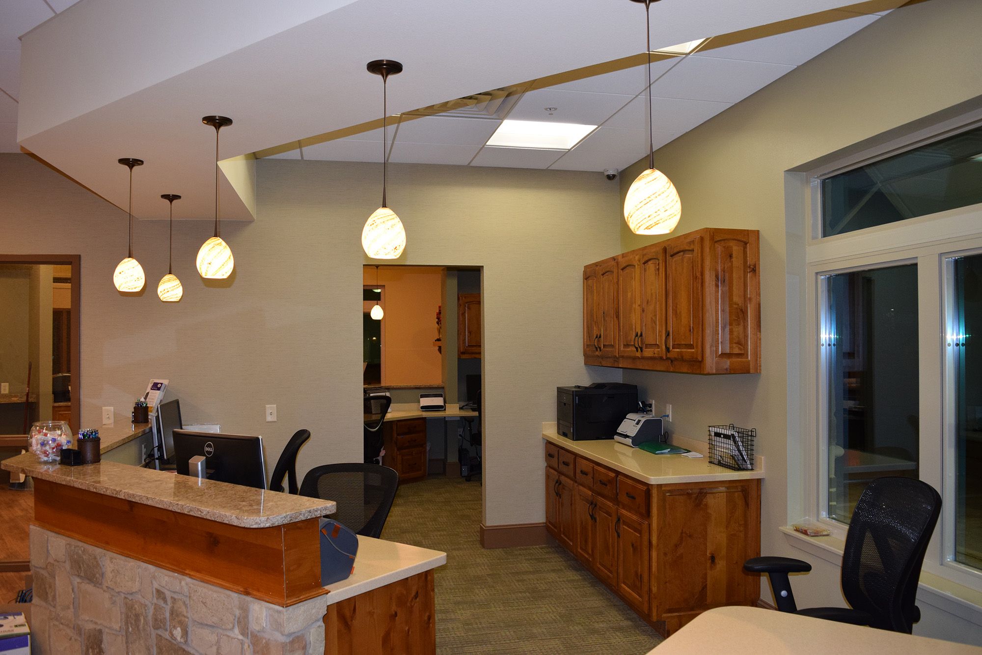 Bryan F. Beagan, D.M.D. and his wife weighed in on all decisions of space and décor during the ground up construction of this Rhode Island dental practice. The result: a unique vaulted orthodontic bay with floor to ceiling windows; a bright, clean space with ample light and nod to energy efficiency.