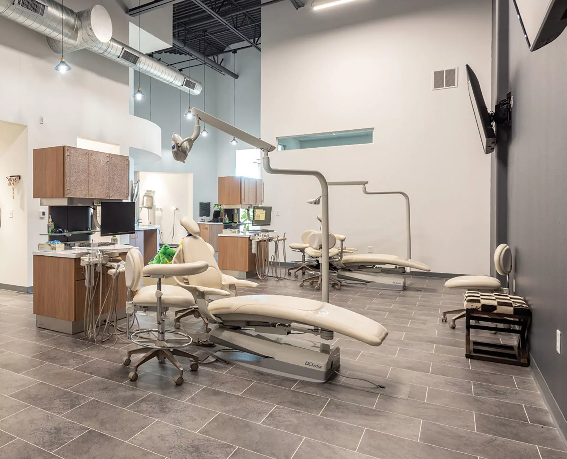 The new practice sits across from an elementary school, providing for an easy influx of young charges. “It’s really good visibility, and a lot of our patients just come by while driving,” Dr. Wilson says.